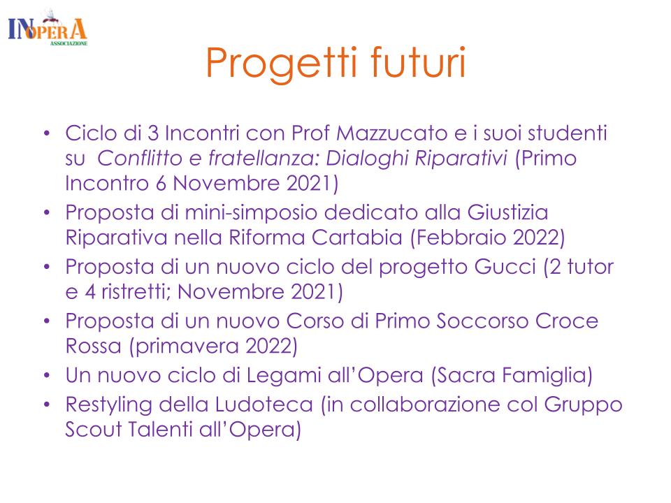 9 ottobre 2021: Presentazione di Associazione In Opera ai ristretti della Casa di Reclusione di Milano-Opera
